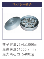 No3 | 水平轉子 | 2×6×1000ml | 4000r/min | 5400xg |