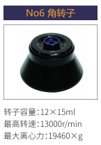 No6 | 角轉子 | 12x15ml | 13000 r/min | 19460xg |